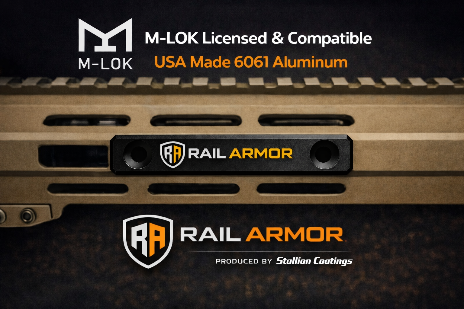 - RA shield and RAIL ARMOR branded deep engraved design